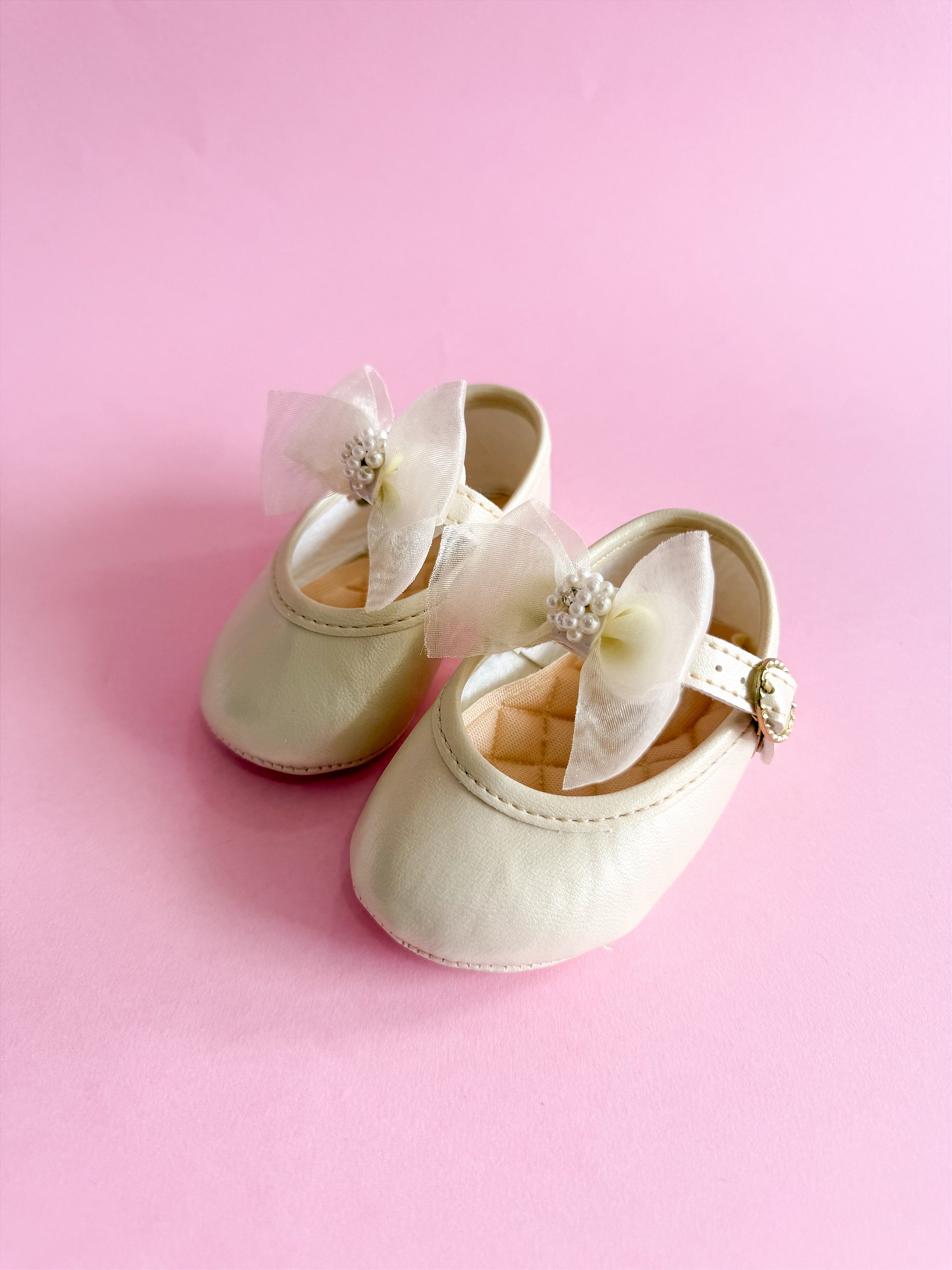 Sapatinho infantil com design delicado e acabamento refinado, trazendo aplicação decorativa que adiciona charme ao modelo. Confeccionado em material macio, com interior acolchoado para maior conforto. Possui fechamento ajustável que garante segurança e praticidade no uso. Solado flexível, ideal para os primeiros momentos do bebê com suavidade e bem-estar.